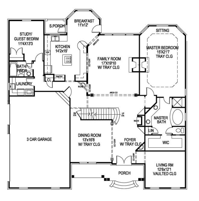 Tray ceilings in Foyer, Family Room, Master Bedroom, and Dining Room.