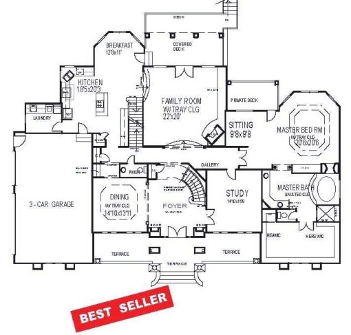 Tray ceilings in Foyer, Family Room, Master Bedroom, and Dining Room.